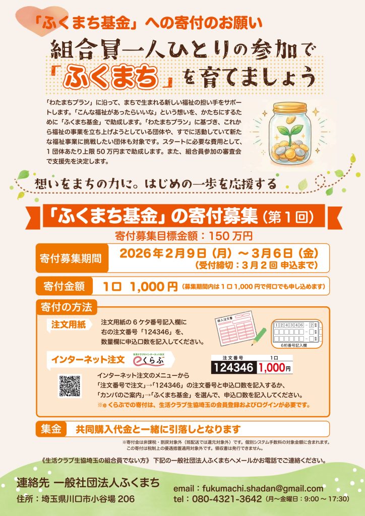 寄付金を原資とした「ふくまち基金」を設立し、新規事業の立ち上げや継続運営を資金面でバックアップします。