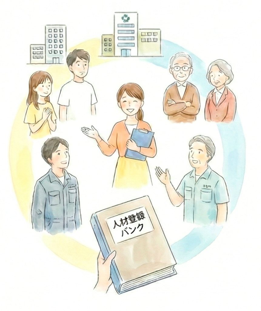 人と人、組織と組織をつなぐ人材を育成して「人材登録バンク」を構築し、地域福祉の担い手を確保・育成していきます。